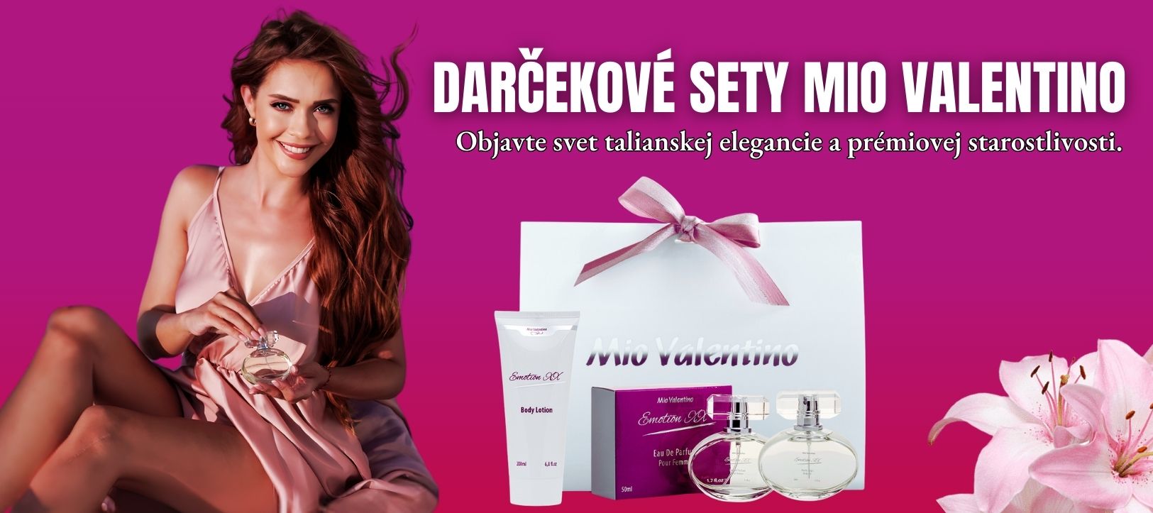 Objavte svet talianskej elegancie a prémiovej starostlivosti o telo s našimi exkluzívnymi darčekovými sadami Mio Valentino. Každý set je starostlivo zostavený a zabalený v luxusnom balení so strieborným logom a elegantnou mašľou – pripravený darovať radosť a vášeň.