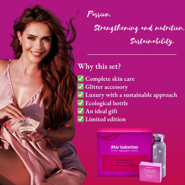 Why this set? ✅️Complete skin care + glitter accessory ✅️ Luxury with a sustainable approach ✅️Plastic-free - an ecological bottle for years ✅️Ideal gift for yourself or a loved one ✅️ Limited edition Ideal for: Women who are looking for effective skin care, love functional perfumed products and want to live luxuriously and consciously at the same time.