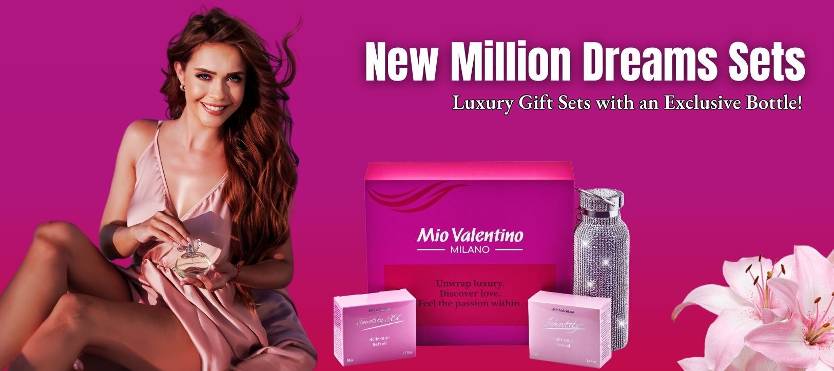 Complete duo ritual for perfect skin. Two luxurious perfumed body oils - Identity and Emotion XX - for changing scents according to your mood, plus an exclusive Million Dreams...